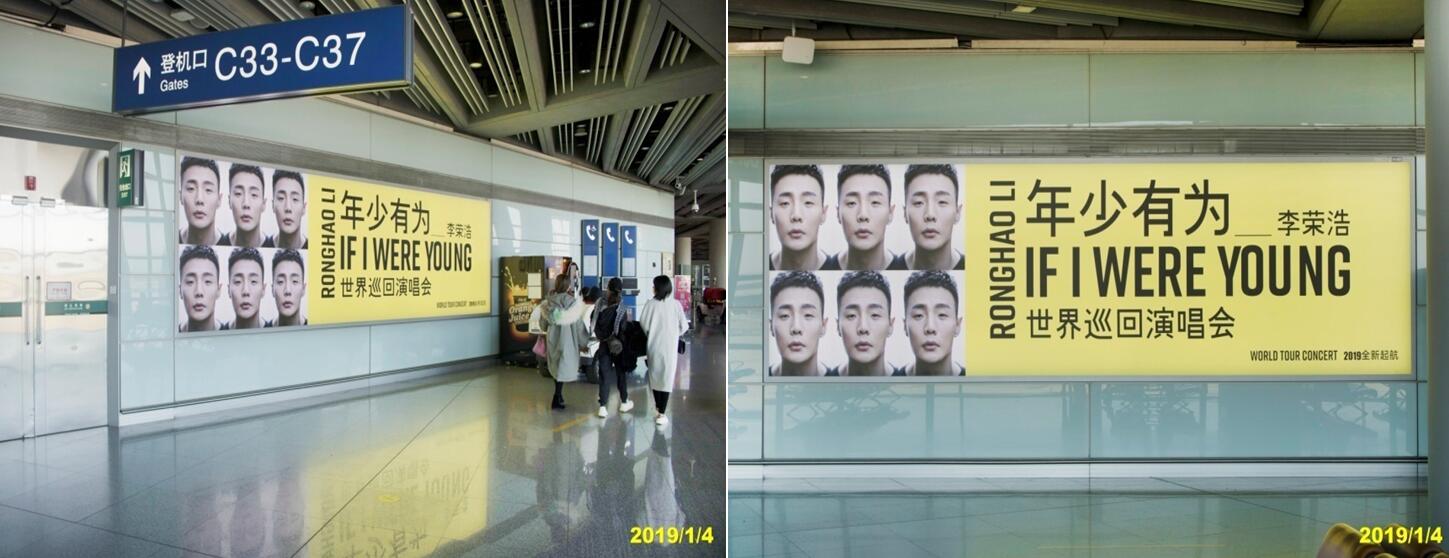 李榮浩年少有為演唱會——首都機(jī)場燈箱廣告 LED大屏廣告
