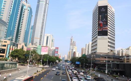 屏體垂直于深南大道,正向視線,有效視距長,航拍視覺沖擊力大。