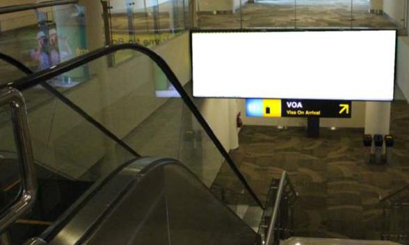 Placed on top of Arrival Escalator of Gate 4, ?facing arriving passenger off from airplane ? ?heading arrival hall / Visa On Arrival counters.