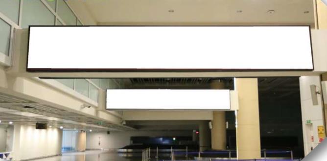 放置在左側(cè)的到達行李認領處天花板上。供在傳送帶周圍漫游以領取行李的乘客觀看
