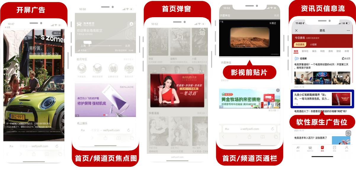 機上WiFi,傳統(tǒng)+電子媒體,數(shù)字內(nèi)容,客艙服務(wù),航程電商,目的地信息等航空出行全場景營銷