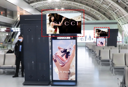 2F國內(nèi)出發(fā)到達混流區(qū)、1F國內(nèi)遠機位出發(fā)候機區(qū)電子刷屏廣告