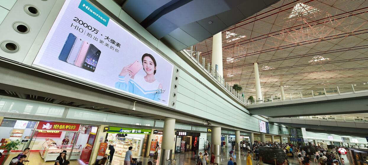 北京首都機場led廣告-北京首都機場T2/T3國內(nèi)出發(fā)區(qū)電子刷屏廣告
