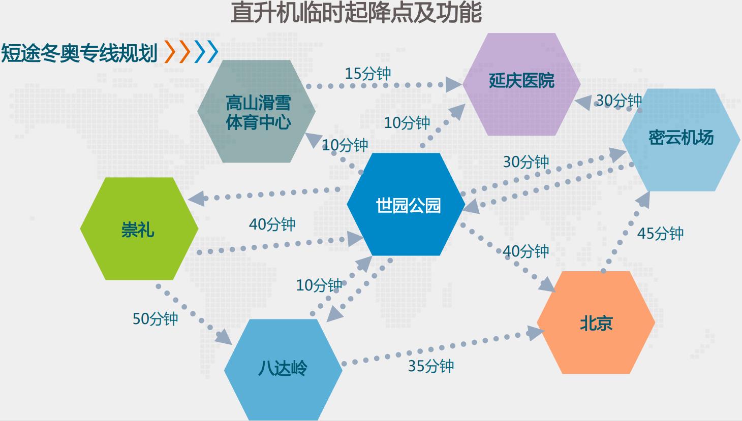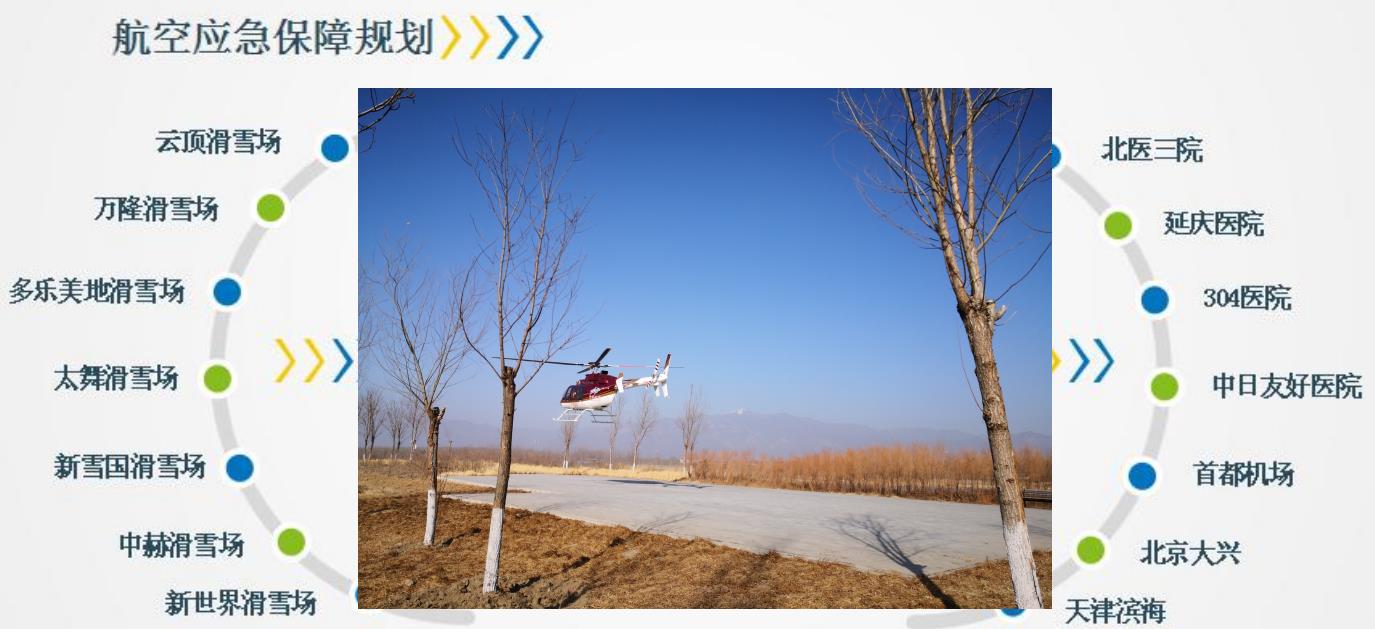 國(guó)家體育總局冬季運(yùn)動(dòng)管理中心位于延慶世園公園內(nèi)的直升機(jī)起降點(diǎn)直飛海坨山賽道航程10分鐘。