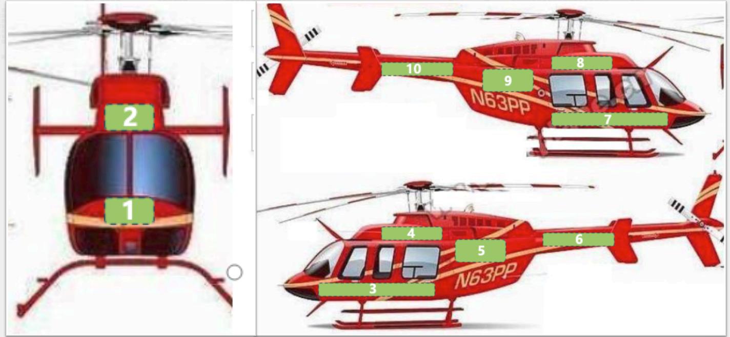 圖中編號(hào)1-10為機(jī)身廣告位置,贊助企業(yè)可根據(jù)贊助方案選擇廣告位置。