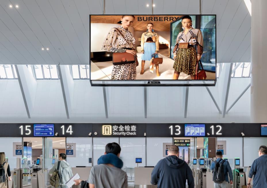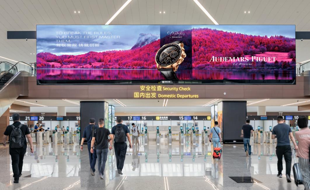 成都天府機場廣告-天府機場T2航站樓出發(fā)大廳安檢前l(fā)ed廣告