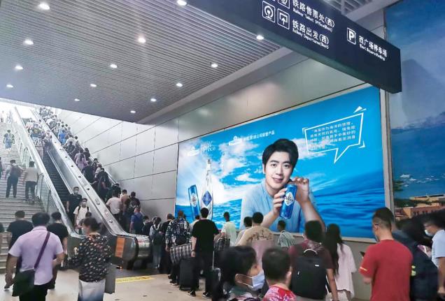青島北站廣告-青島北站西廣場(chǎng)出入口扶梯旁燈箱廣告