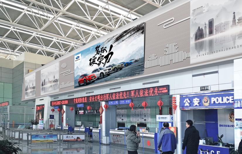 嘉峪關(guān)機(jī)場廣告??出發(fā)到達(dá)混合大廳辦票島上方led廣告
