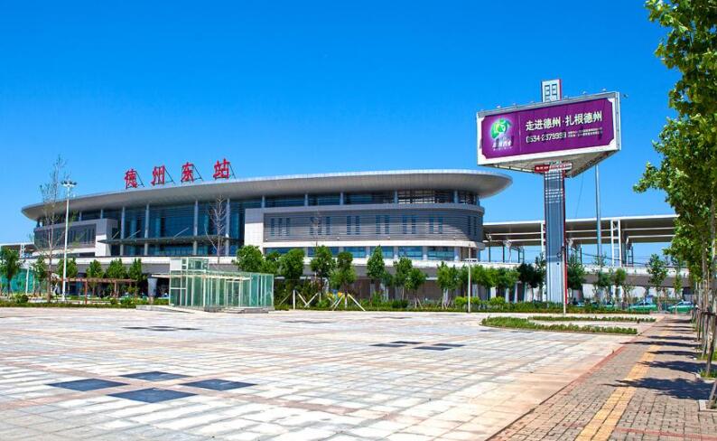 德州東站,位于素有“九達天衢”“神京門戶”之稱的山東省德州市,中國高速鐵路客運網“四縱四橫”中的一縱一橫——京滬高速鐵路和青太客運專線交會于此,在京滬高速鐵路上北距北京南站314公里,南距上海虹橋站1004公里,在青太客運專線上西距太原南站437公里,東距青島站506公里。