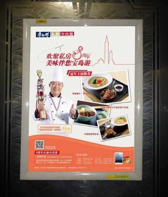 與其他戶外廣告相比,電梯廣告是投放價格較為合適的廣告形式,即使是預算較低也可投放。廣告直達消費者家中,在狹小的電梯轎廂中,電梯廣告的畫面較為醒目,能在消費者腦海中留下深刻印象,非常適合店面推廣、品牌宣傳、生活服務等行業(yè)。