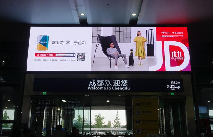此次嘉寶莉在全國重點城市投放機場廣告,全方位覆蓋至社會中高端人群,有力地展示“嘉寶莉,不止于色彩”的品牌理念,讓“雙11”廣告效果較大化,更迅速地提升知名度與影響力。